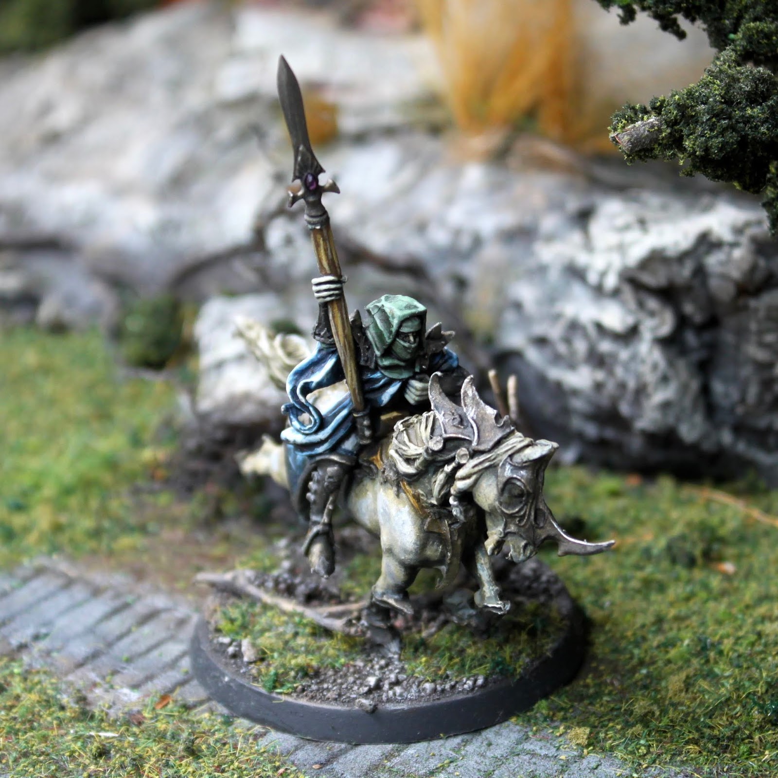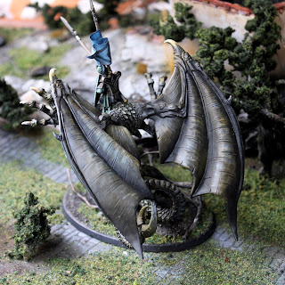 The old forest dragon is a model I have always loved. I used to own one, but sold it. Actually this was my fourth "S dragon" and the first I actually finished. Went in with naturalistic look with lots of glazes. Tested out also the new contrast paints a bit. Nice paints, but nothing special when I have worked with acrylic inks for a long time. I swapped the body and head from the rider for a high elf hero bit I had lying around, made it bit more militaristic with the armour. I maybe should still add a lance pennant for the model.